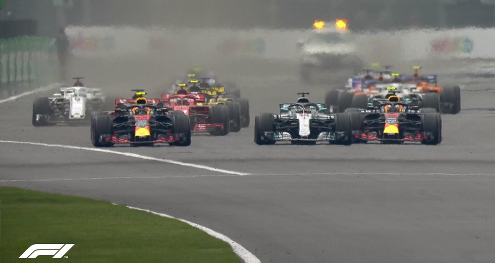 比赛当日,墨西哥城阳光明媚,气温 19℃,路面温度 33℃,良好的天气条件为车手们提供了理想的竞技环境。从排位赛脱颖而出的红牛车队双雄里卡多和维斯塔潘,在正赛发车时便展现出强大的统治力。维斯塔潘迅速完成抢位,一骑绝尘,而里卡多也不甘示弱,紧跟其后,形成了红牛车队的梦幻开局。梅赛德斯车队的汉密尔顿和博塔斯、法拉利车队的维特尔和莱科宁等一众顶尖车手也在发车后迅速展开激烈角逐,赛道上瞬间硝烟弥漫。