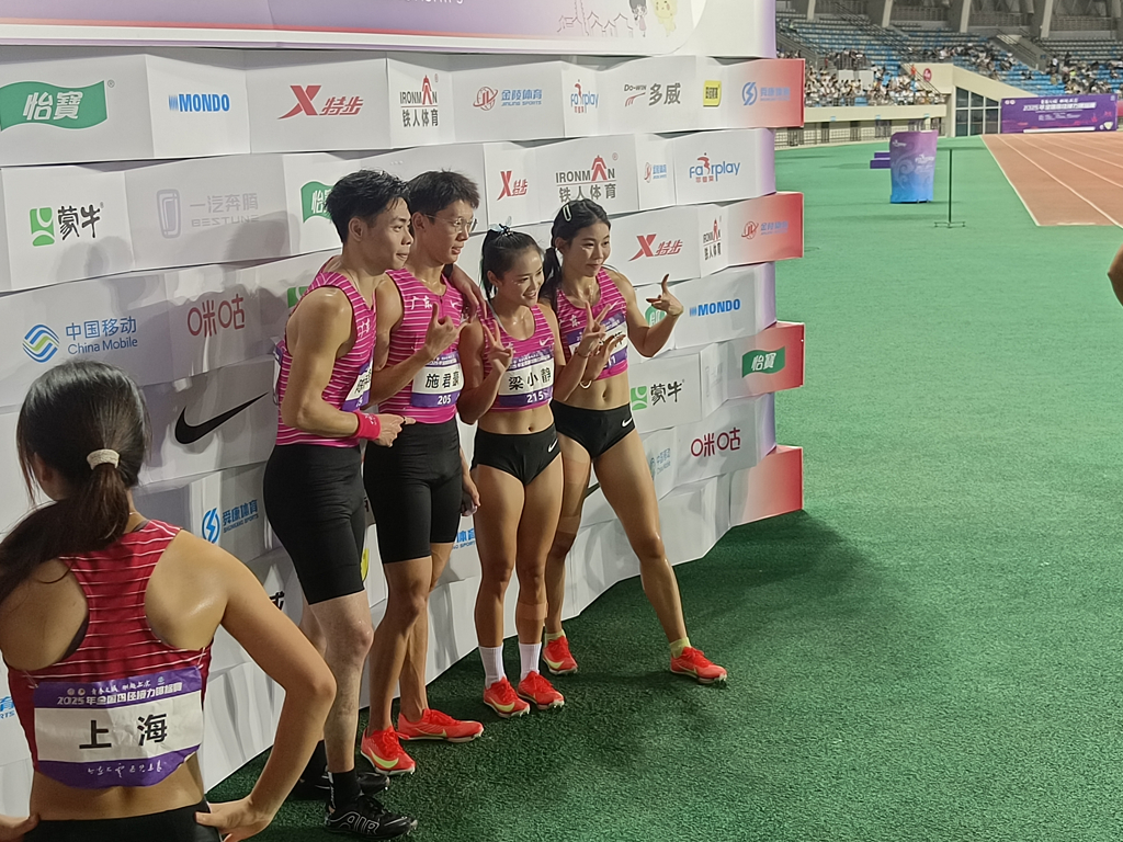 女子4x100米接力:湖北队以43秒58实现三连冠,上海队(43秒85)和浙江队(44秒07)分别刷新市纪录与赛季最佳。