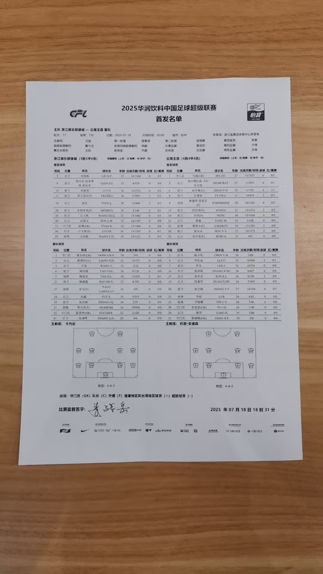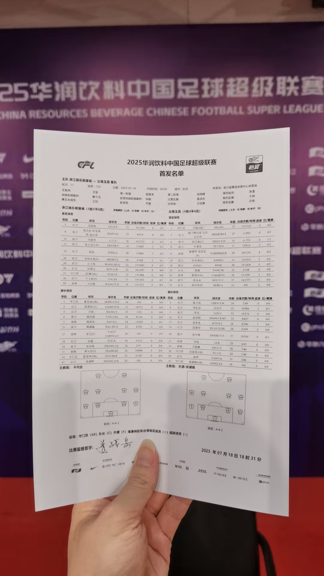 北京时间2025年7月18日20点整,2025赛季中国足球超级联赛第十七轮浙江俱乐部绿城队坐镇杭州黄龙体育中心体育场,迎战升班马云南玉昆队的挑战。