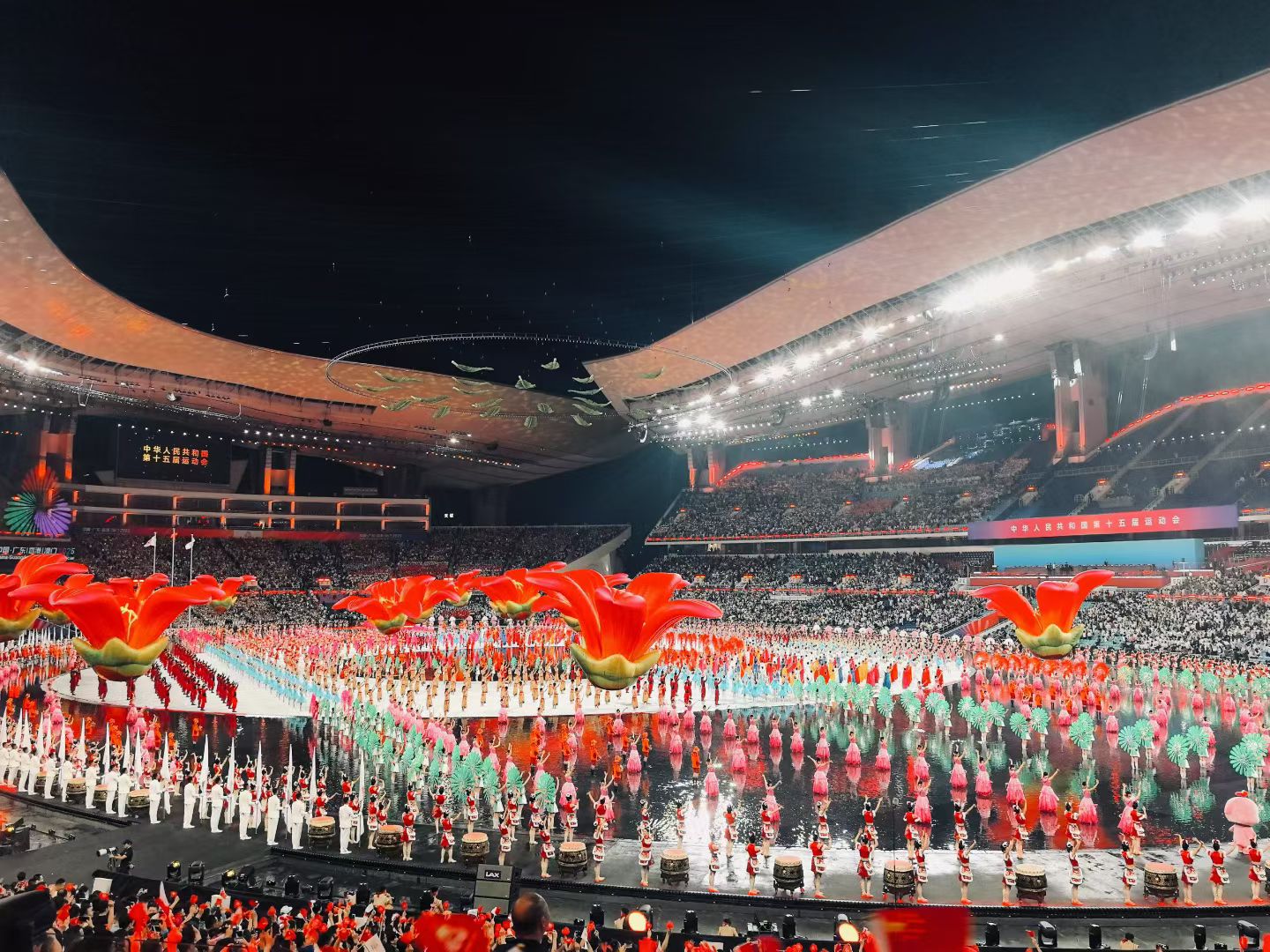 北京时间2025年11月9日20时整,中华人民共和国第十五届运动会在广东省广州市广东奥林匹克体育中心体育场盛大开幕。