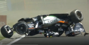 在第一次自由练习赛中,佩雷兹遭遇严重撞车事故!