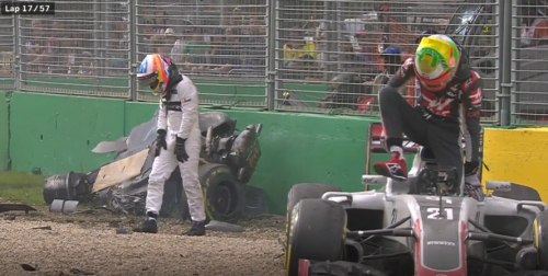 然而,在这里发生了意想不到的事故,阿隆索和古铁雷斯发生了碰撞,阿隆索的赛车被撞得粉碎…… 比赛因出示红旗而中断。
